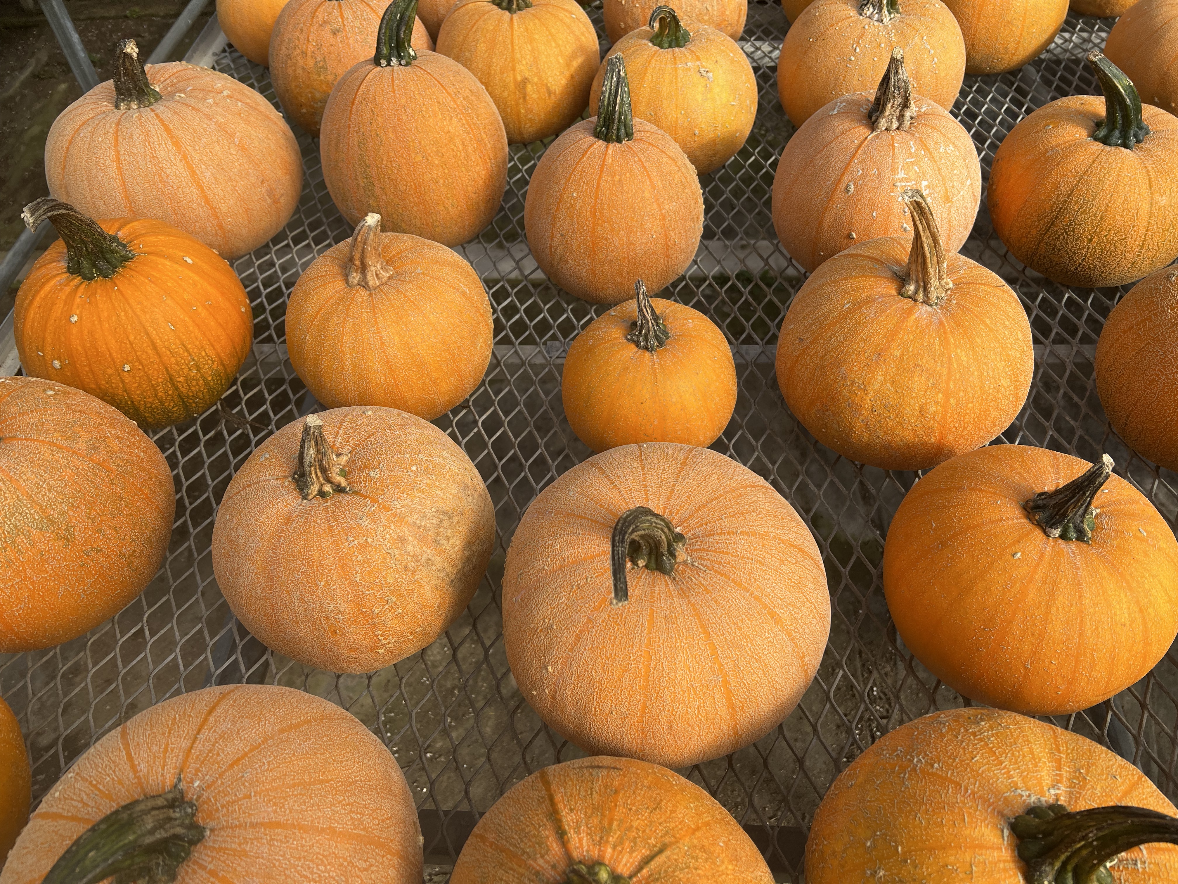 Pie Pumpkin-A varietiy we love. Heirloom. Very dry and creamy. Perfect for soup, bars or pie. Thin walled so not a long storage life….Fall ornamentals here for thise members that would rather have a decorative and not bake a pumpkin.