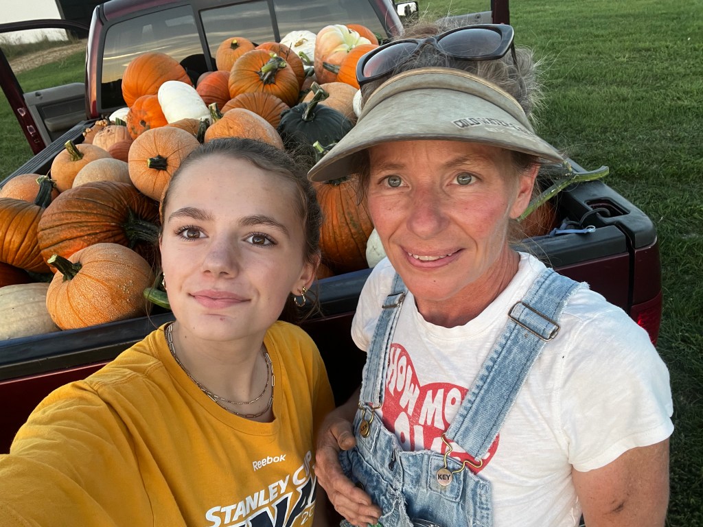 Pumpkins-Quite the Haul! All lined up and ready in the driveway again this week for CSA members to select a favorite.