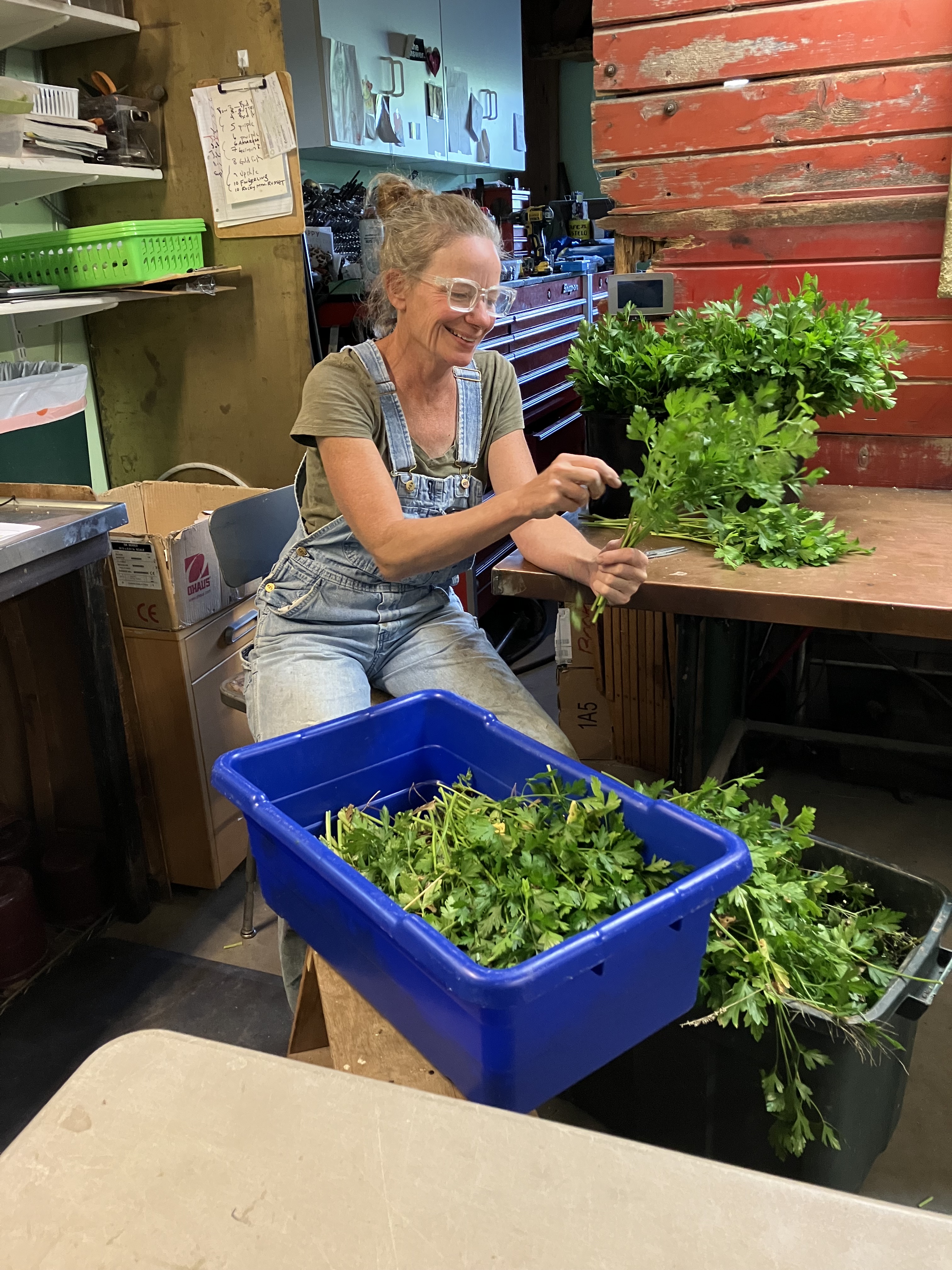 Another great week prepping for the final share. We had a blast dancing around the pumpkin patch finding the prettiest pumpkins for the shares this week. Lots of beauties out there and it truly is 1 of our favorite crops to harvest. We filled a truckload and even had to sneak a few extra in the cab and Maeve had to hold one too on the way home! We checked every single variety of winter squash and made the group decision that they were just not quite ready. So close but who wants to eat an almost-ripe squash…? Not us, so major squash overload will be in the bonus season offerings in the future.
