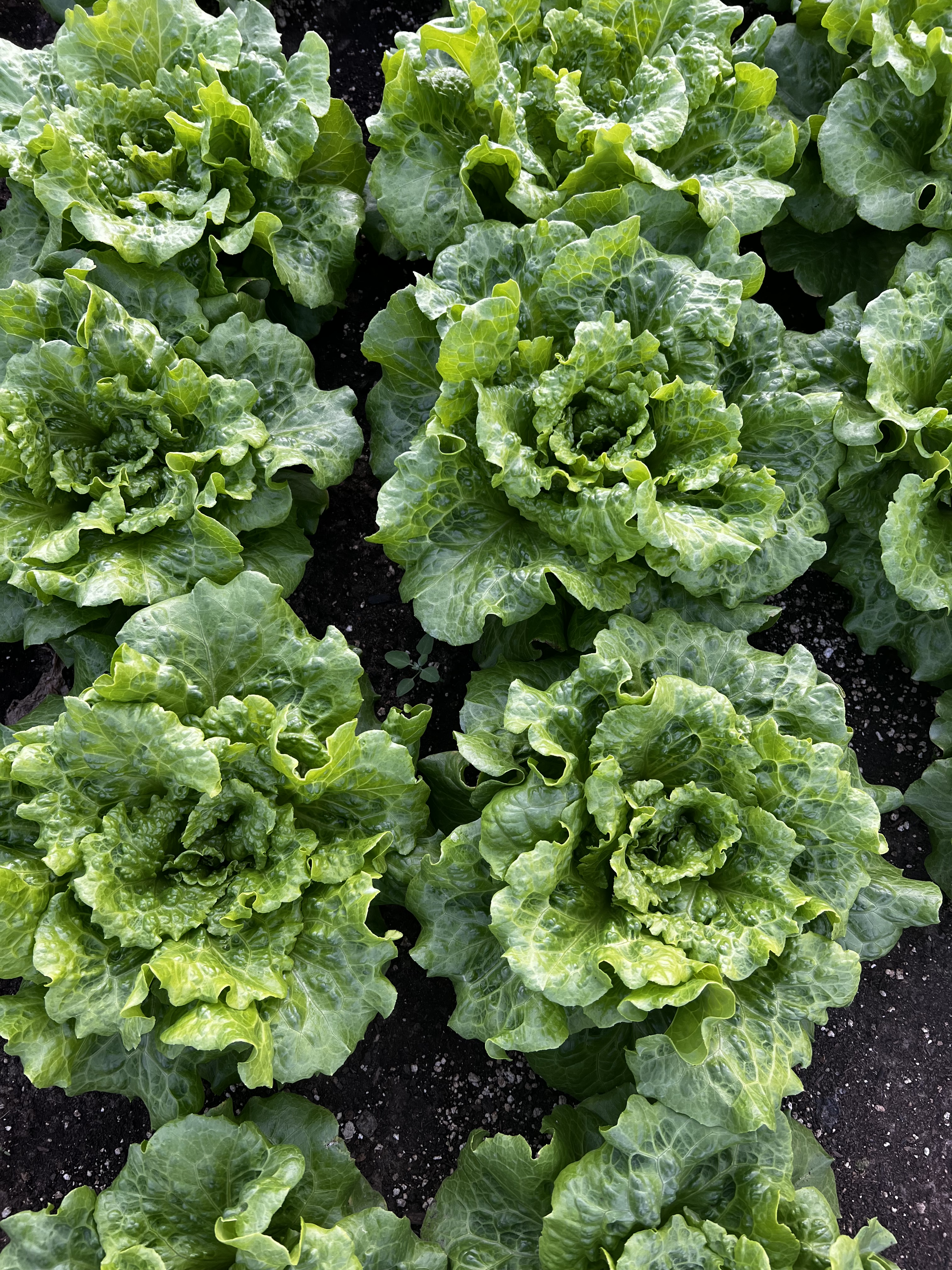 Head lettuce-2 great varieties harvested this week out of hoop 1. Delicious and so pretty too. A butter head added to the full shares this week that I know are on the favorite list of a few members! Enjoy.