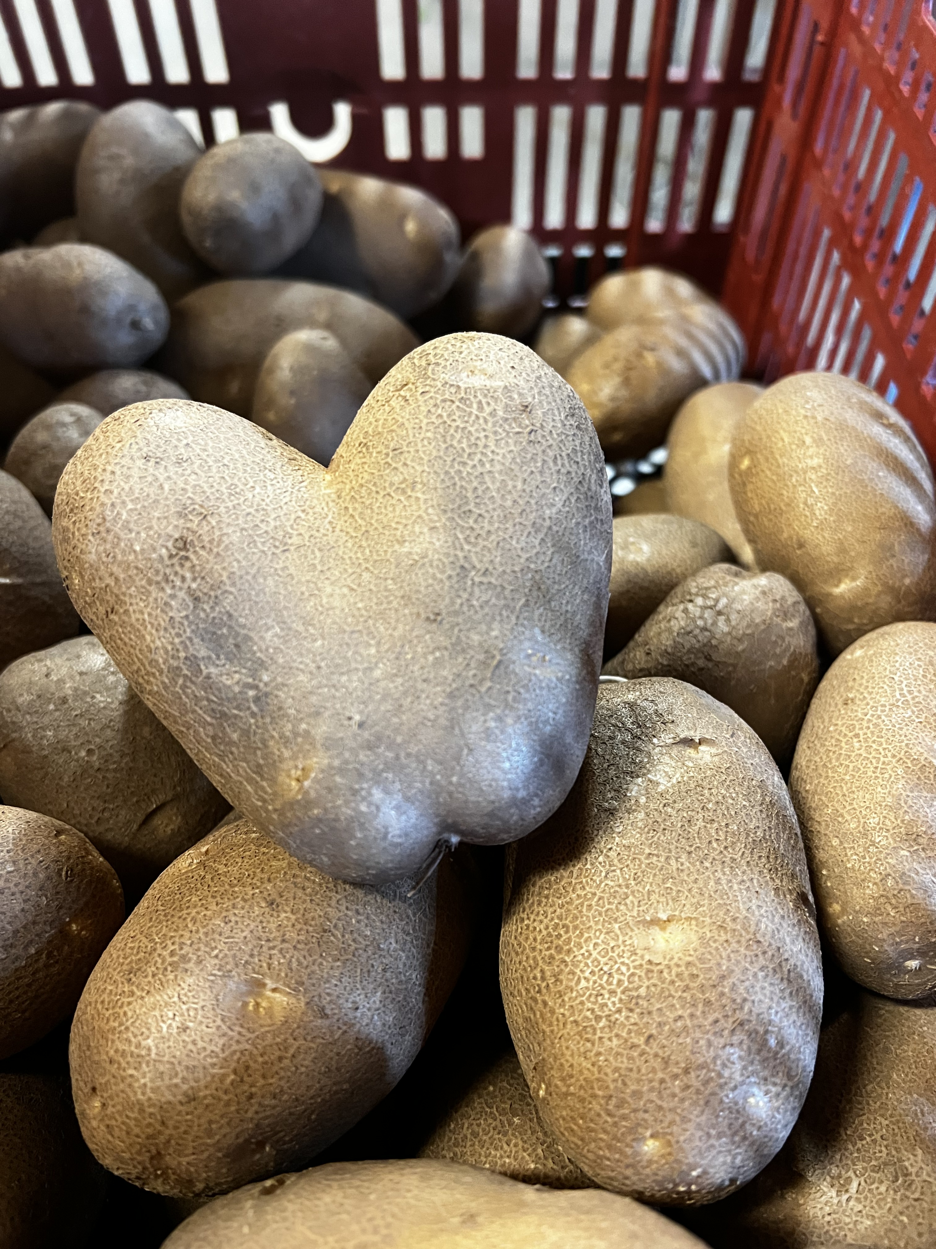 Russet potatoes-Beauties for sure!!! and 2 perfect hearts are tucked in as a surprise for 2 members as a treat.