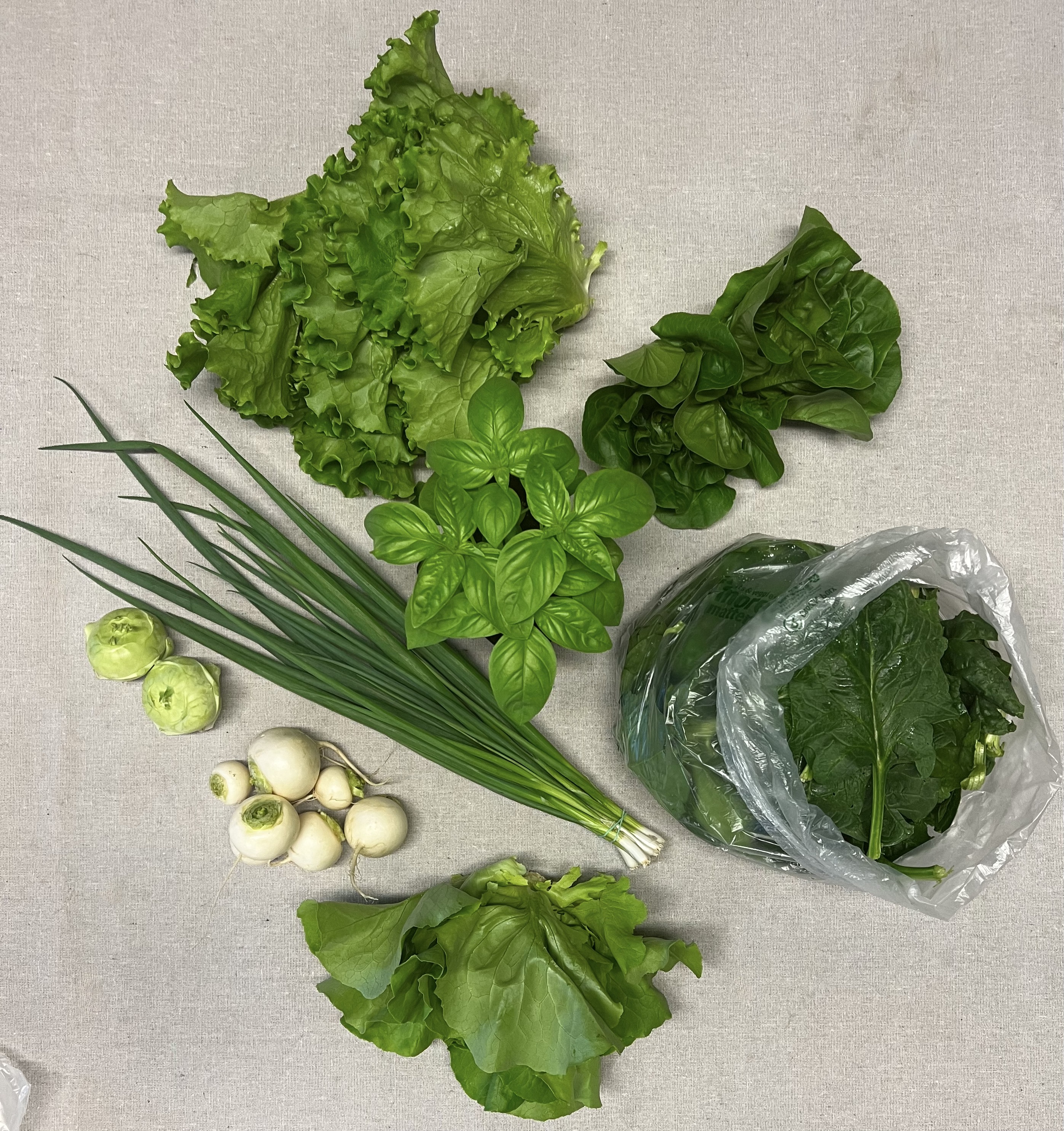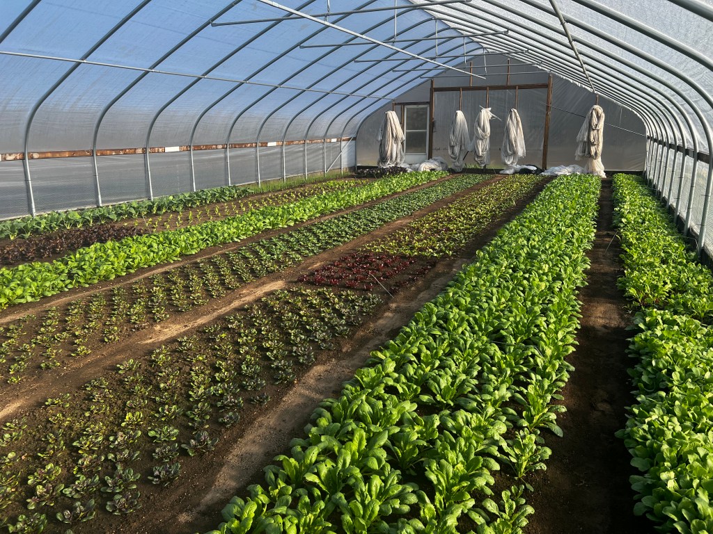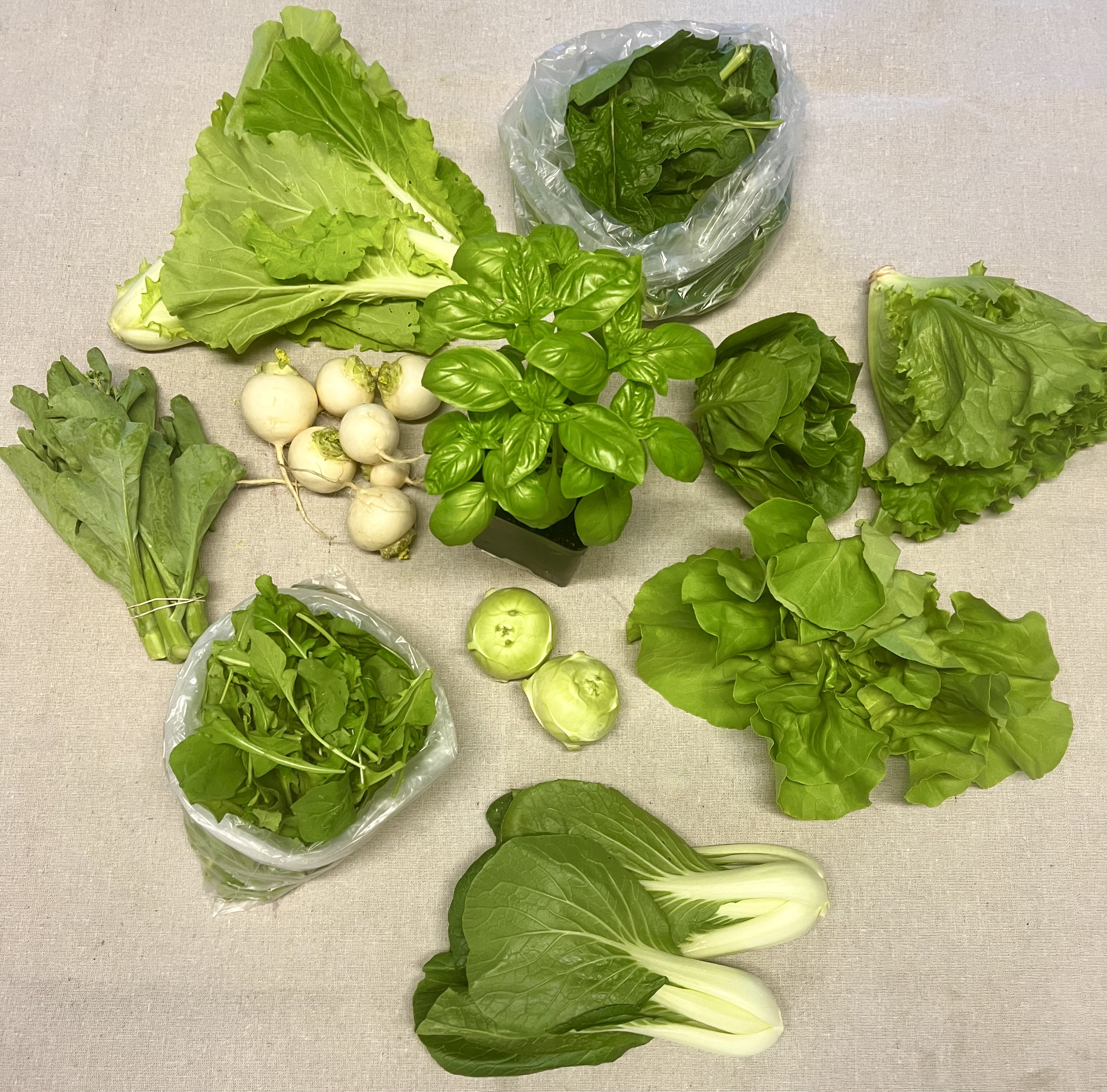SPRING SHARE 2024–4 consecutive weeks of cool-loving crops from our hoop houses starting in May. A green lovers delight! The share will include 6-10 different offerings each week. Tons! of Spinach, head lettuce, salad mix, saute mix, sunflower shoots, pea shoots, micro greens, arugula, salad turnips, radishes, baby carrots, pac choi, asian greens, and more! A delicious treat after the long cold winter!! Produce is clean, carefully packaged, and stored in our walk-in cooler until the time of pickup. $165.00 ($41.25 week)