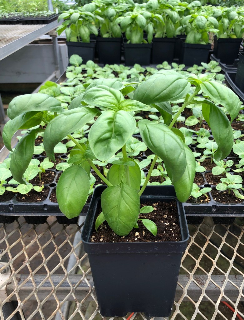 Basil plant, kohlrabi, rhubarb, head lettuces, Chinese cabbage, french breakfast radishes and fresh dill