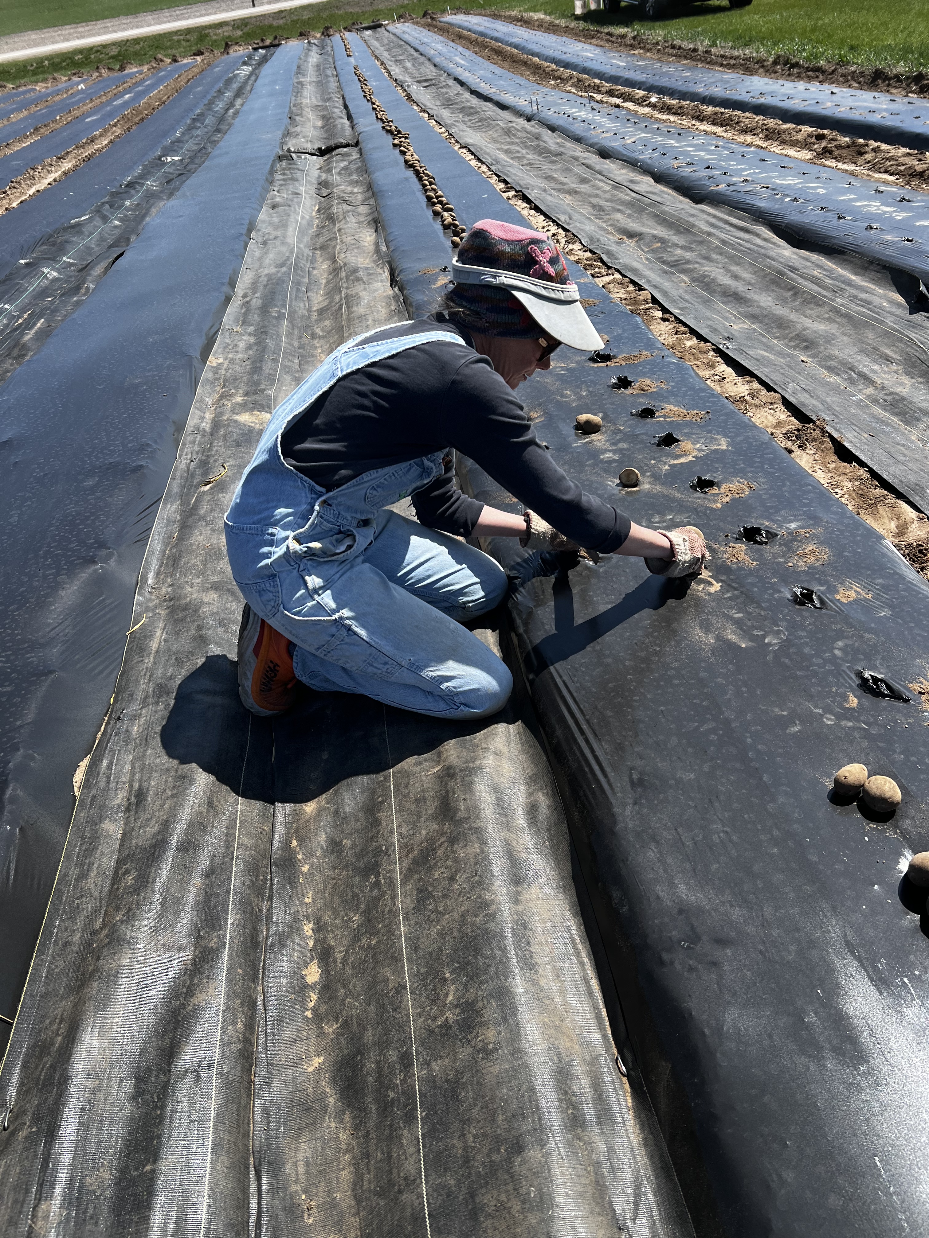A strong week for us with crops going in the ground. Feels good to have all the tomatoes planted. The eggplant is in, tons of kohlrabi transplanted, parsley transplanted, lettuce rotations transplanted into hoops 1 and 2, a long row of carrots, a long row of beets transplanted-very fussy, 1/2 the cucumbers are transplanted, and the long summer squash patch is in! Fun ornamentals and flowers also added to the gardens. Space opened up in our greenhouse-finally! with all those tomatoes moving on and we seeded in flats of broccoli, lettuce, late basil, asian greens and more. We are transitioning to garden production and summer.
