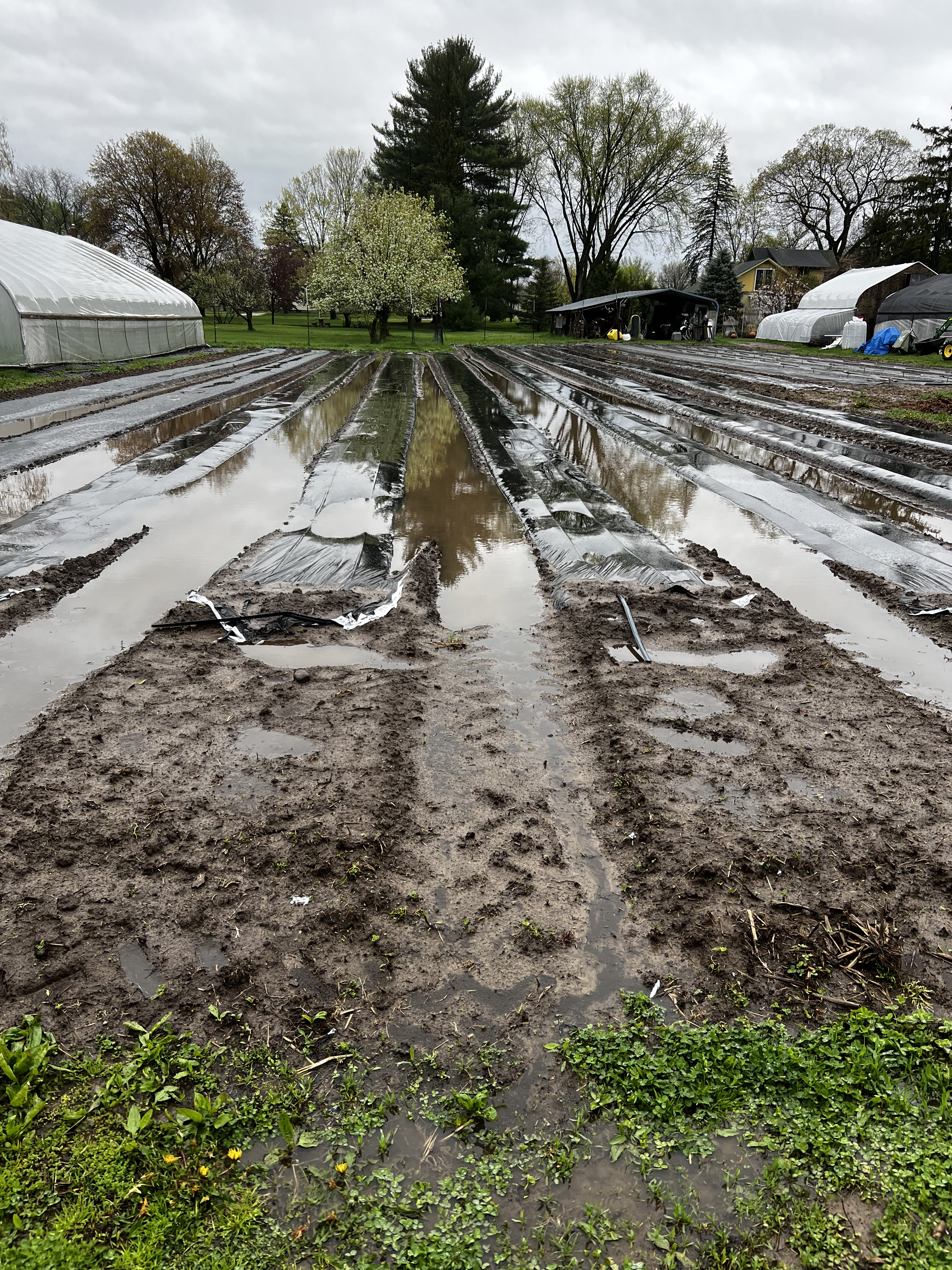 Wonderful warm rain fell this past week and the gardens seem to double in size. We had over 2.5 inches total, and the severe weather skirted around us gratefully. It was a nailbiter the night the city sirens wailed as we had just finished planting the last row of our 400 tomato plants. We worried about hail as the storm clouds rolled in. All good here.