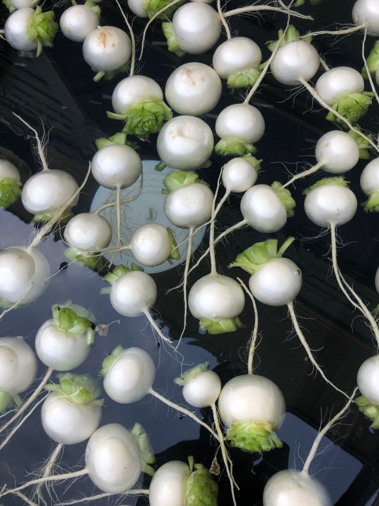 Turnips-The last of these Spring delights. Long storage life in the refrigerator. In our opinion raw is best but they roast up wonderfully in the oven.