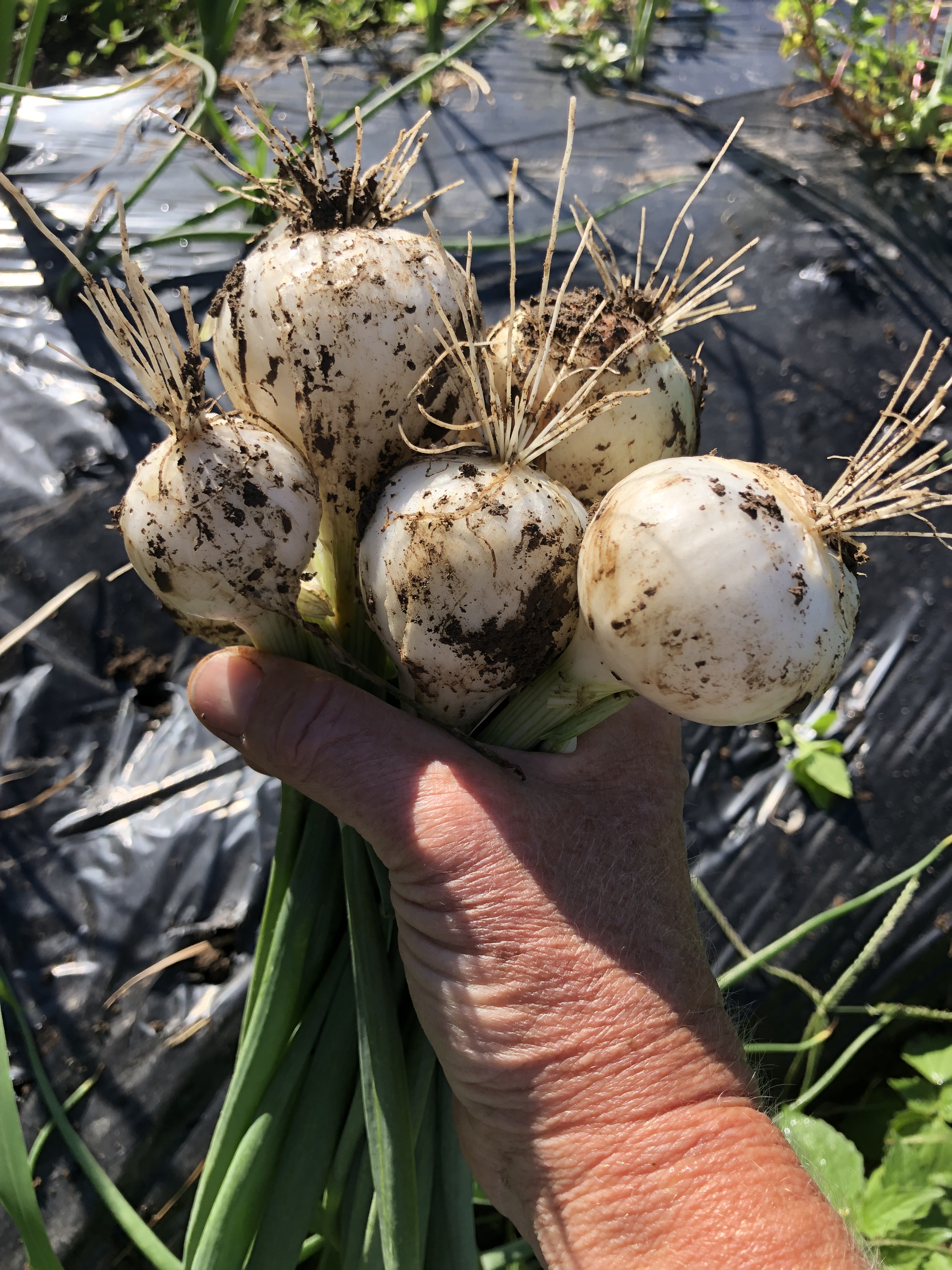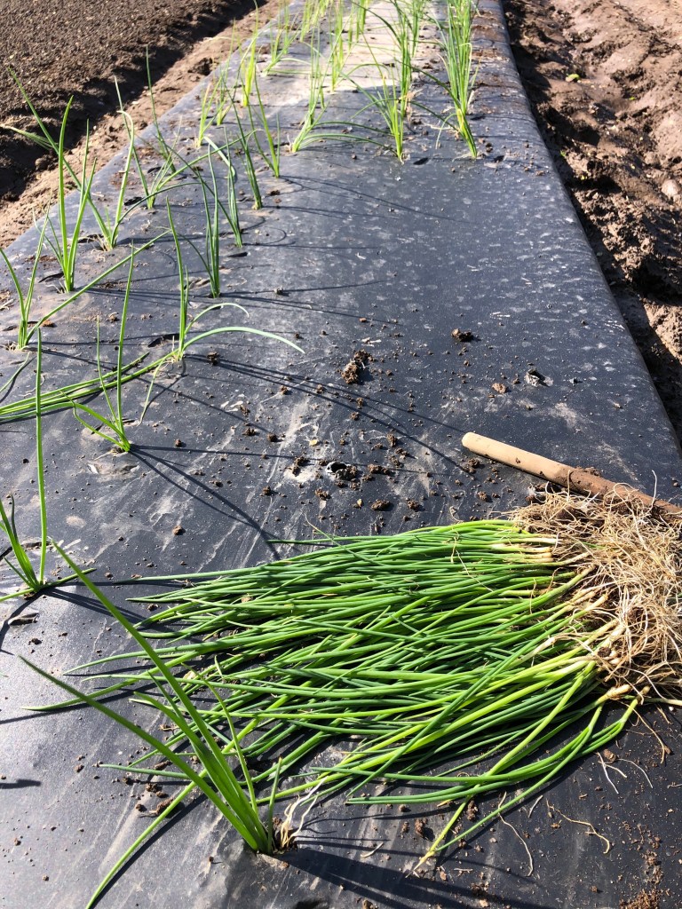 Another week flew right by. The onions are all planted after a few rain delays. It feels great to get this big task done. 1000’s are in and some fun varieties too. A great audiobook kept me company as I made my way down the rows.