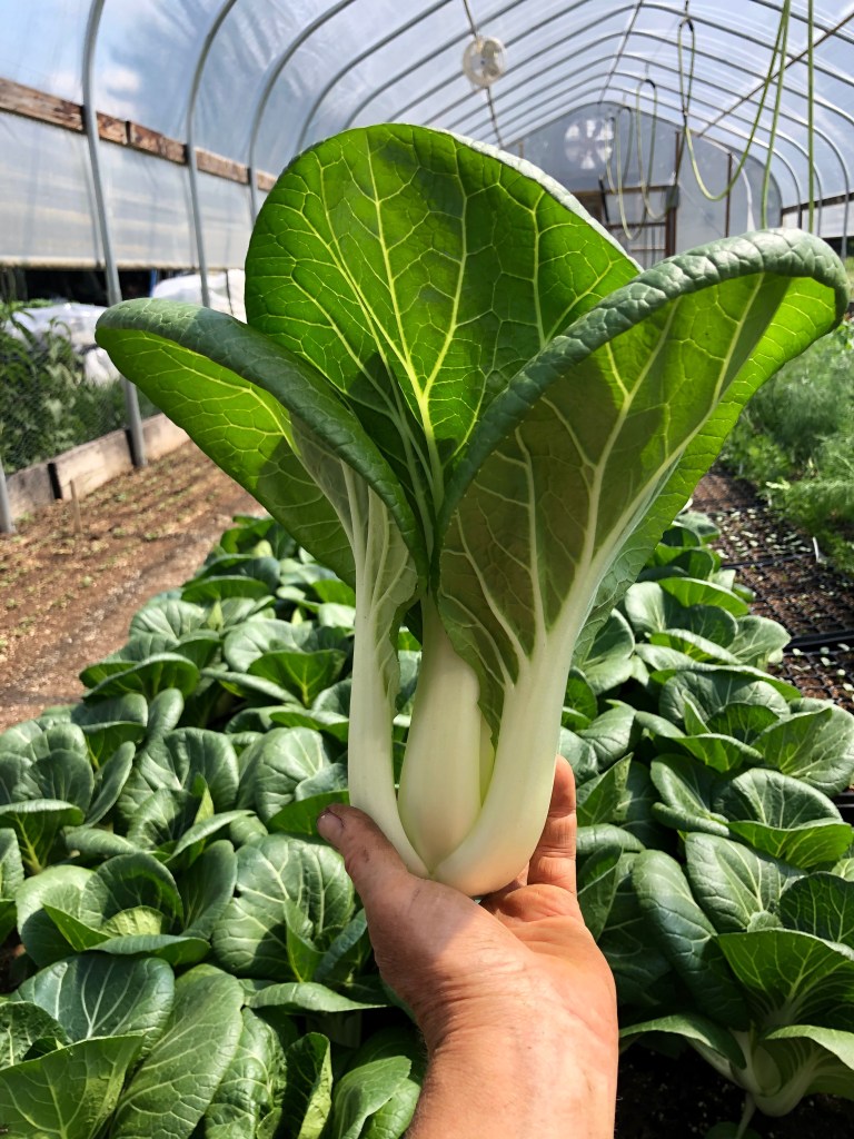 Pac choi-The Pac Choi harvest is a little crazy! We have a fantastic yield this spring on all varieties. I’m about pac choi’d out! Enjoy this 1 final spring harvest. Raw, saute, charred, or juice the flavor is delicious.