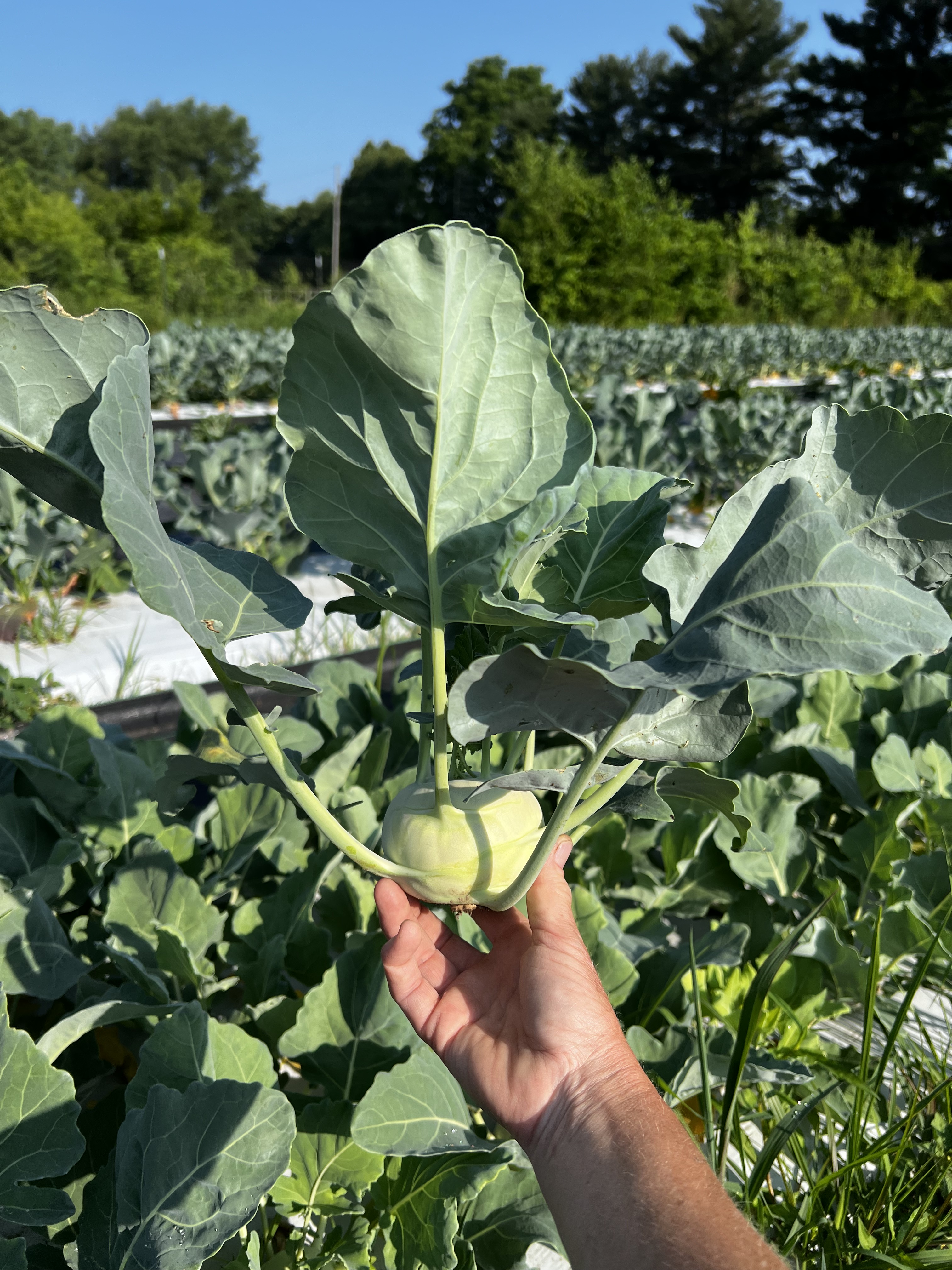 Kohlrabi-This is from our 1st outside planting. 2 varieties white and light green. A great raw addition to fresh salads.