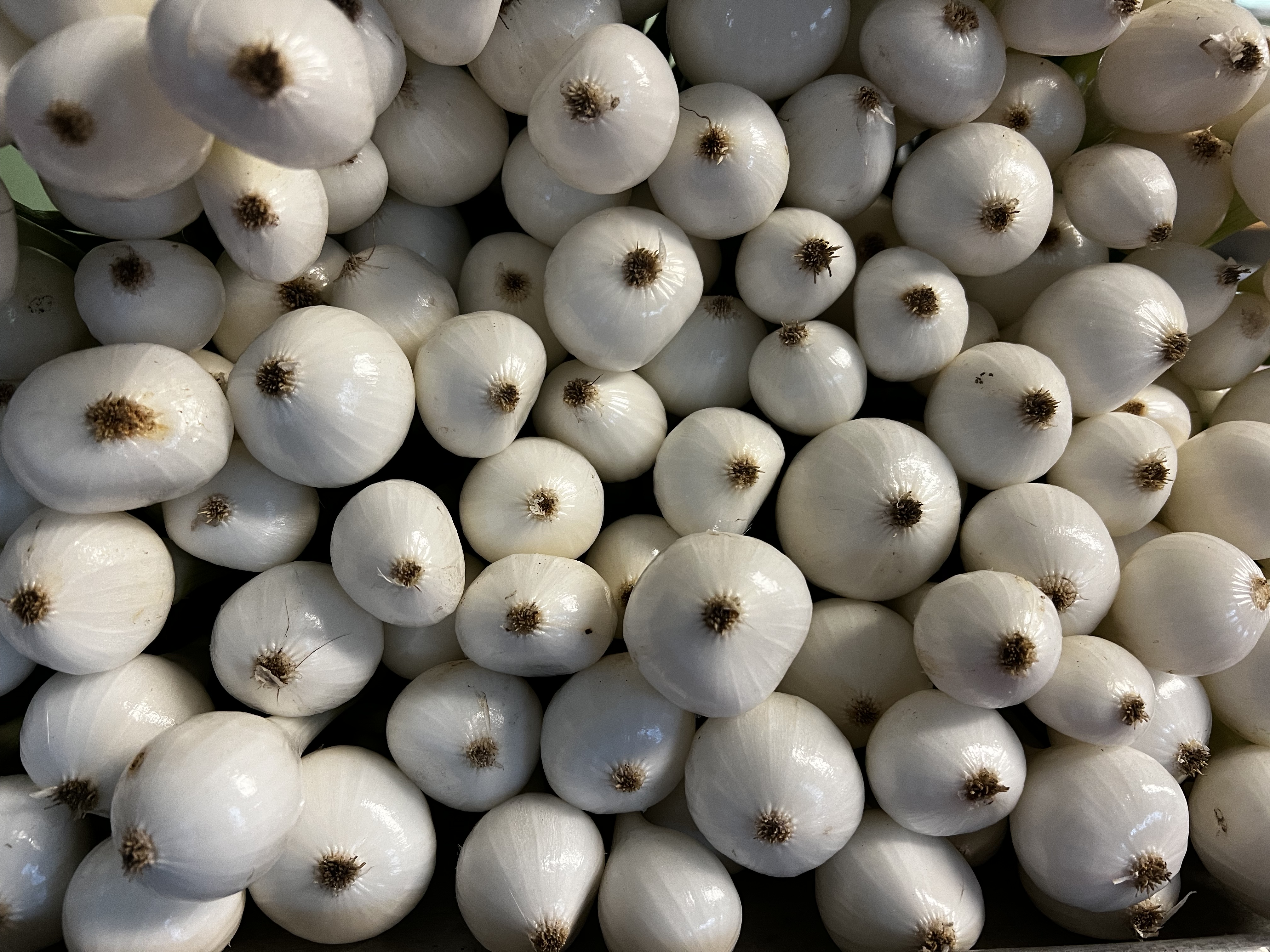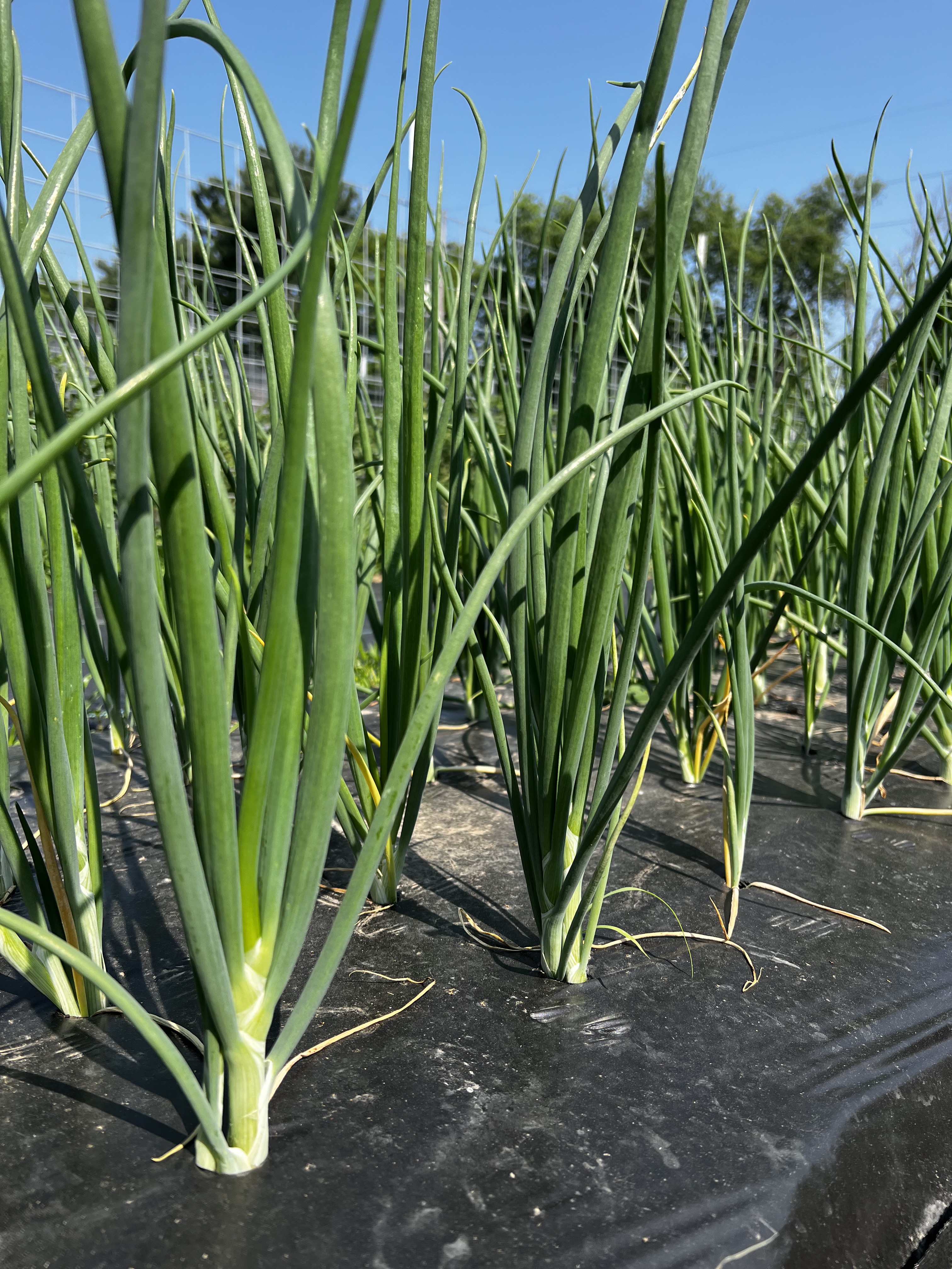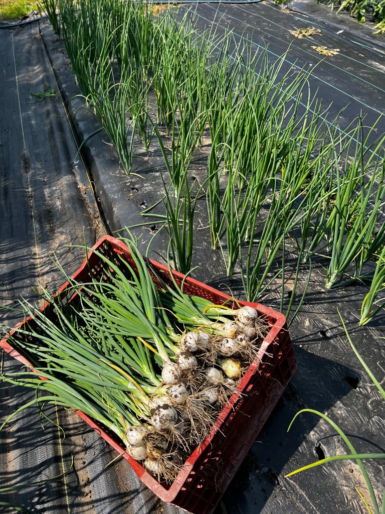 Onions-The surprise rockstars of the week. I was walking by the onion area and decided to take a peek. Shocked they were ready. These are the early cocktail onions-variety is Eclipse. More to come next week too.