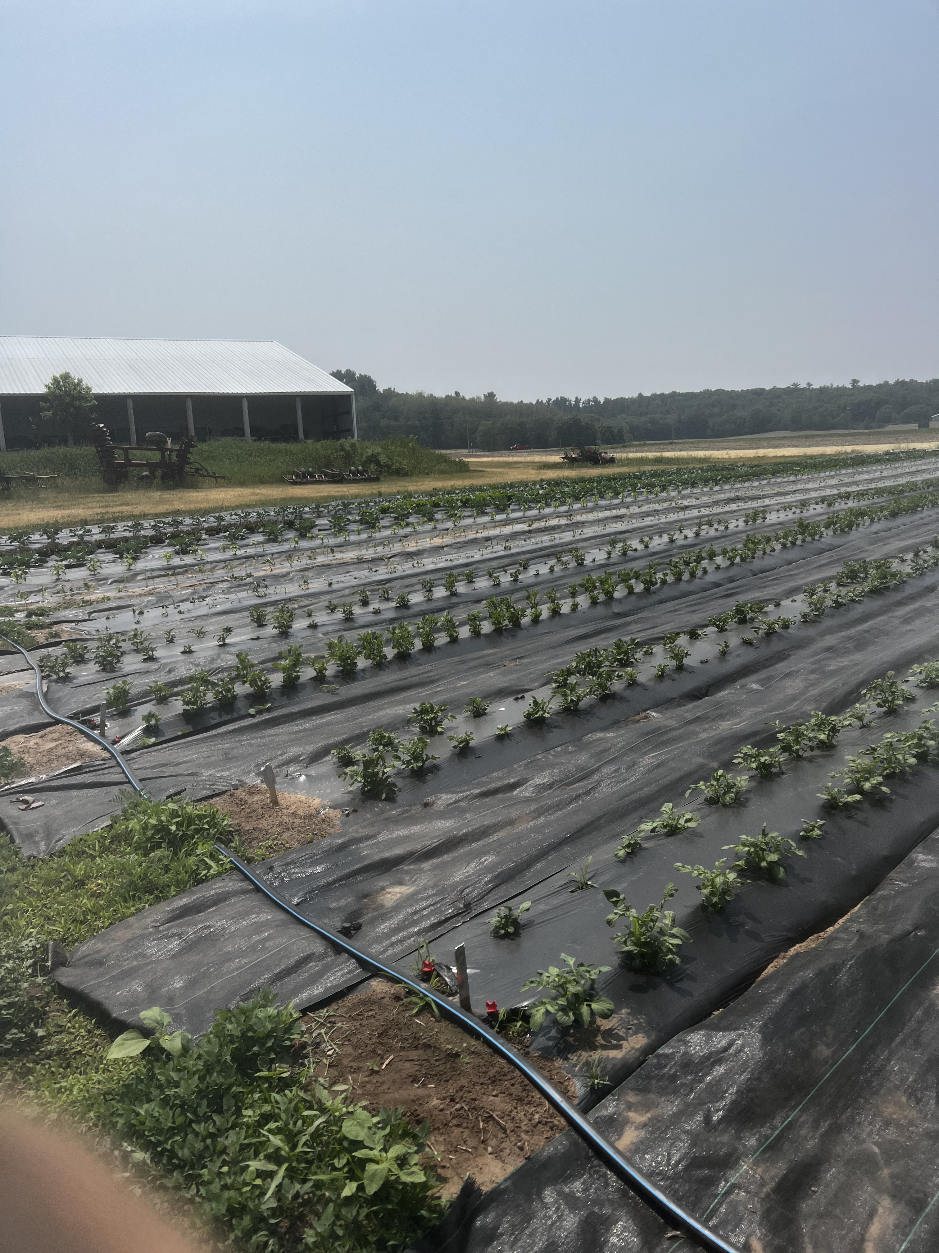 Weeding and watering was our week. Irrigation runs all day long somewhere in the gardens….a constant these days. We are keeping up and life around here looks good. This heat makes for early morning work and then an evening return to the gardens to finish up. Both hoop houses are fully planted with carrots-(colored ones too!), beets and assorted leafy greens. The field crops look fantastic and all are strong except for the peas which I am not even going to mention again. We will get what we get from the 2nd pea rotation and move on. The vines are struggling in this heat and no matter how much water we dump on them it is just too hot. Not a pea year that’s for sure.